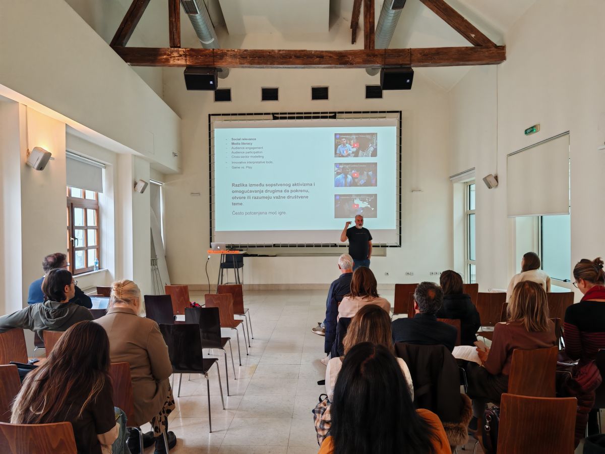 Обуку води тим МЕДИА Деска Србија у сарадњи са Богданом Шпањевићем, креативним директором и истраживачем који се бави интерактивним сторителингом, гeјмификацијом и хибридним културним форматима. Богдан је аутор награђиваних дигиталних и партиципативних пројеката за водеће европске музеје — од интерактивног ЕЕГ аудио-водича који прати емоције посетилаца (Munch Museum, Осло) до гејмификованих интерактивних изложби и урбаних игара које повезују уметност, технологију и нарацију. Његов рад спаја институције културе, публику и технологију кроз игре и системе који посетиоце претварају у ко-ауторе искуства.