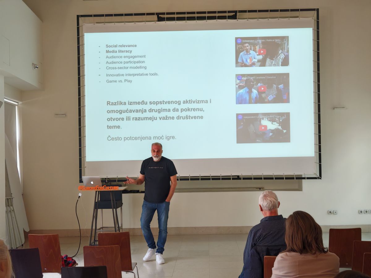 Обуку води тим МЕДИА Деска Србија у сарадњи са Богданом Шпањевићем, креативним директором и истраживачем који се бави интерактивним сторителингом, гeјмификацијом и хибридним културним форматима. Богдан је аутор награђиваних дигиталних и партиципативних пројеката за водеће европске музеје — од интерактивног ЕЕГ аудио-водича који прати емоције посетилаца (Munch Museum, Осло) до гејмификованих интерактивних изложби и урбаних игара које повезују уметност, технологију и нарацију. Његов рад спаја институције културе, публику и технологију кроз игре и системе који посетиоце претварају у ко-ауторе искуства.